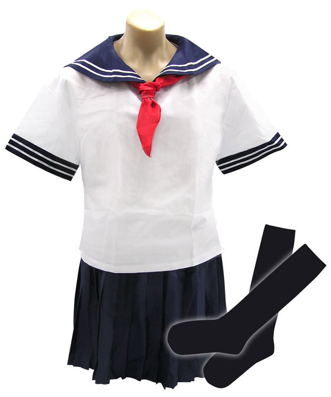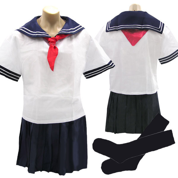 フリーサイズ(メンズ) マネキン:胸囲97cm・胴回り75cm・腰周り95.5cm セット内容:ブラウス・リボン・スカート・ソックス パッケージ:35.5×25.0×5.5cm