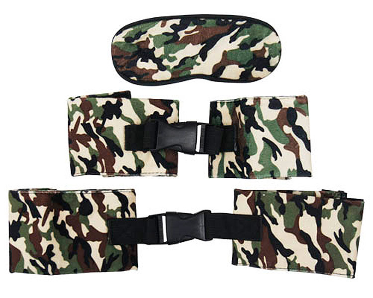 ミリタリーマニア必見!カモフラ柄が可愛いSM拘束セット。 ●肌に優しいふかふか起毛●定番グリーンのカモフラージュ柄●男女とも使用OKなフリーサイズ●視界をしっかり遮るアイマスク●手枷・足枷の留め具は面ファスナー●「手×手」「手×足」など組み合わせ自由なジョイント接合。 パートナーの視界と手足の自由を奪ったら、次はどうする?思わず興奮しちゃうワクワク要素たっぷりなSMセット。 刺激が足りないカップルさんにもおすすめです。