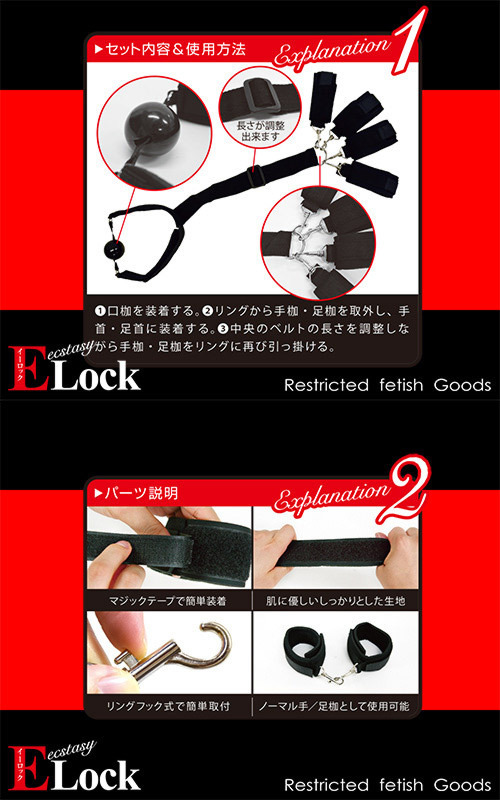 HOME > SMグッズ・拘束具 > 枷・他(手足首・全身) > ELock(イーロック) 口・足・手枷