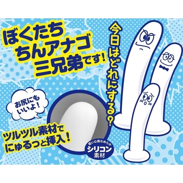 にゅるっと入れやすくて気持ちいい!シリコン素材のディルド三兄弟「ちんアナゴ」シリーズの長男バージョン。 ●本体全長18cm・太さ3.5cm●シリーズ中一番太い長男●肌触りの良いシリコン素材●つるんと滑らかなフォルム●強力吸盤でピッタリ固定。 凹凸のないシンプルフォルムでアソコやアナルに無理なく挿入♪巨大フォルムでガンガン攻める「ちんアナゴ」三兄弟の長男ディルド。 強力吸盤付きなので激しいアクションにも対応できます。