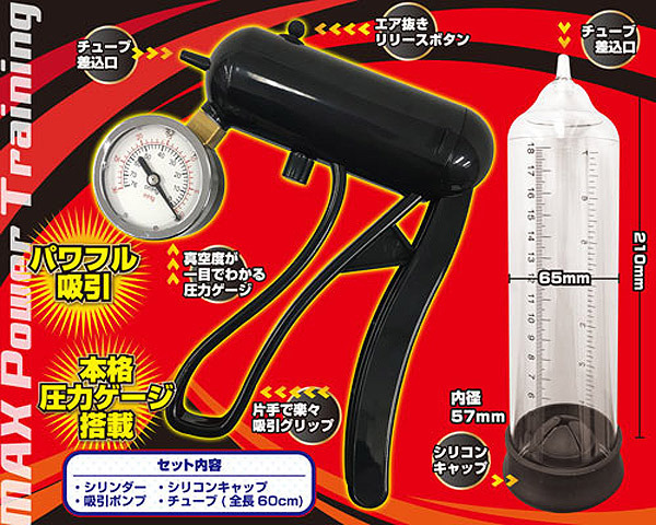 グリップを握るだけで強力吸引できる手動のペニスポンプです。 使い方はいたってシンプル!シリンダーにすっぽりとペニスを収め片手でグリップを握るだけ。 シリンダーは目盛付きでどれだけサイズがアップしたかをすぐに実感できるから、毎日の鍛錬がきっと楽しみの一つに♪また、吸引ポンプは目視できる圧力ゲージ付きで安全にも配慮された設計。 徹底管理で無理のないトレーニングを行えます♪使用の際はシリコン製キャップにローションを塗ることで身体への密着度がアップ!ただし、あまりローションをつけすぎると返って滑ってしまう場合もありますので少量でお試しください。 使い終って気になるのは洗浄方法ですが、シリンダーとキャップは丸洗い可能なので、いつでも清潔な状態でお使いいただけます♪日々の鍛錬で理想のサイズを手に入れよう!