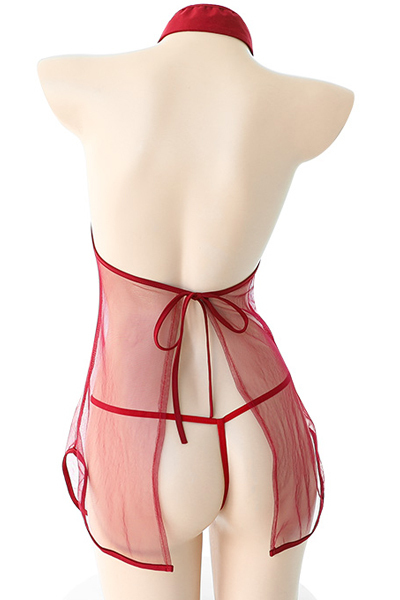真っ赤なベールが身体を包みこむ、ノースリーブタイプの花リボン付スリット入りミニチャイナドレス。