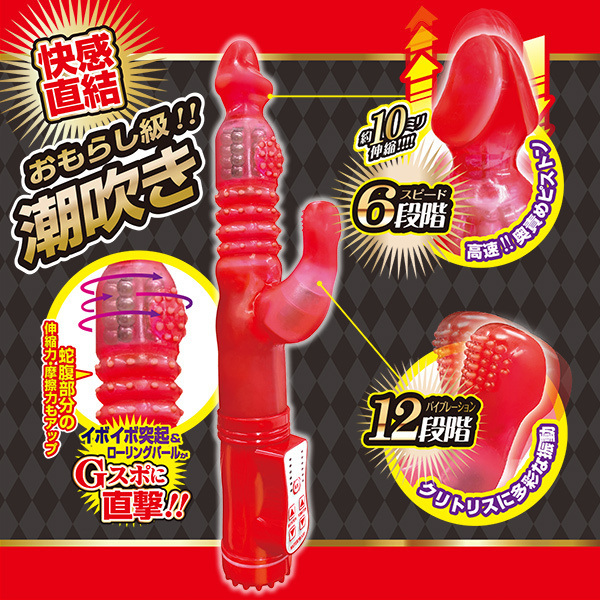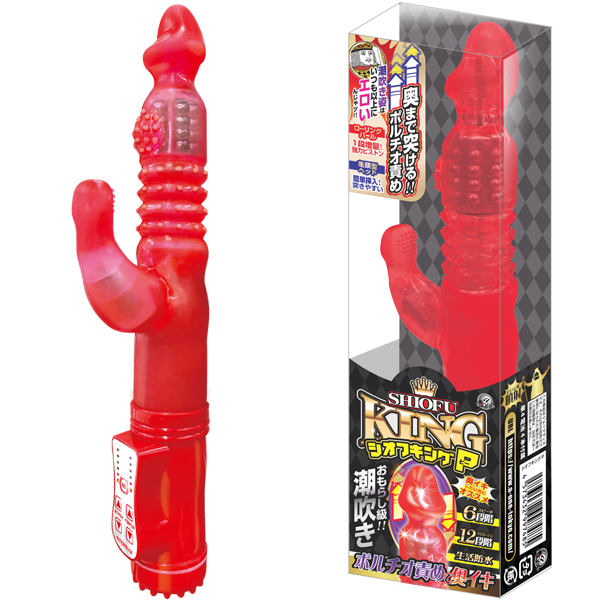 今日は奥でイッてみたい、そんなときに役立つのがこちらの「シオフキングP」です。 挿入部分は12.5cm(伸縮時)と奥まで届きやすく、ジャバラが伸縮して奥をガン突きするから奥イキしたい方へおすすめのバイブです♪ヘッドは挿入しやすい亀頭型で反転機能を備えたパール回転が心地よくうねり、12段階の種類を備えた子バイブの振動が奥イキだけじゃなくクリも同時にしっかりと刺激してくれます。 Gスポットにはイボイボ突起&ローリングパールの高速摩擦が快感を与え、ポルチオには6段階スピードの奥責め高速ピストンが膣奥を責めつつ同時にクリイキまでも味わわせてくれます♪快感直結で動作も多彩。 生活防水だからたくさん潮を吹いても大丈夫!シオフキングと2本使いで潮吹き大会を楽しむのもいいですね♪