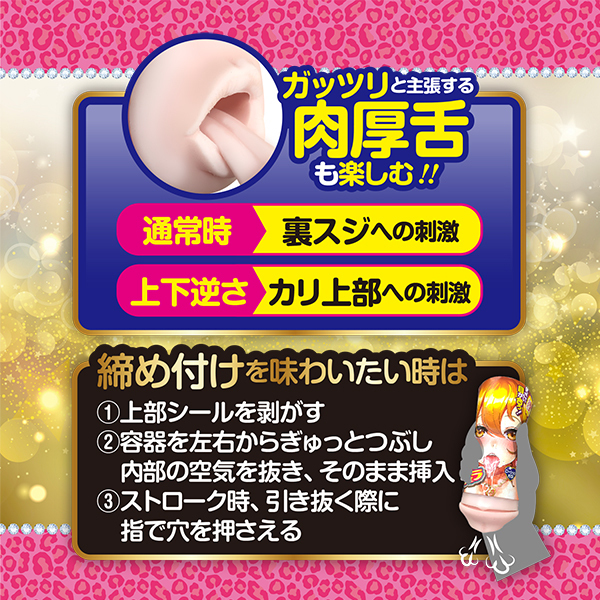 生意気そうなメスガキギャルのお口にドピュッと種付け!超ウケる★精子ガン飲み主観フェラカップ!目が合うから臨場感UP★★★★★フタを開けたらリアルな唇と肉厚舌がお出迎え♪内部長はちょっぴり長い約130mm。 喉奥まで突っ込んでイラマも楽しめる。 <内部形状>●リアルな唇&肉厚舌●繊細な横ヒダと2列の縦突起●2連のど輪・純国産・ローション付属