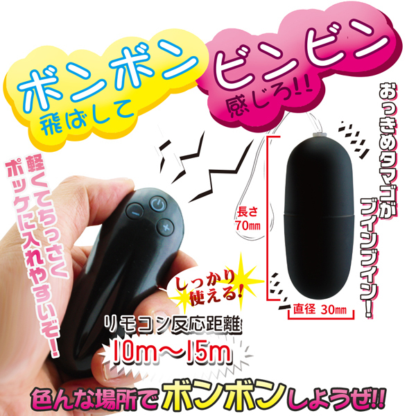 色んな所でボンボン飛ばしてビンビン感じよう!軽くて持ち運び易い遠隔仕様の小型ローター。 プレミアムマット加工を施した3cm幅の卵型ローターでブインブイン快感!最大飛距離は10〜15m、振動は20種類を搭載。 生活防水対応でメンテナンスも簡単♪よければ飛距離30m&ハイパワー「悶子の立ってられないR(b26797)」も是非どうぞ◎ブラック、単4電池を3本使用