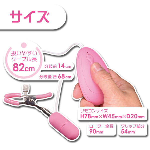 女性に人気の可愛いピンクカラーのスマートニップルローター登場。 挟む強さを調節出来るから全然痛くならないソフトフィールからお好みに合わせて楽しめます。 ニップル部分も滑りにくく肌に優しいラバー素材採用!ハイパワーと軽量化を両立させたマイクロモーター搭載のローターが乳首を絶妙に刺激します!20パターン振動で色々楽しめる高性能乳首ローター。
