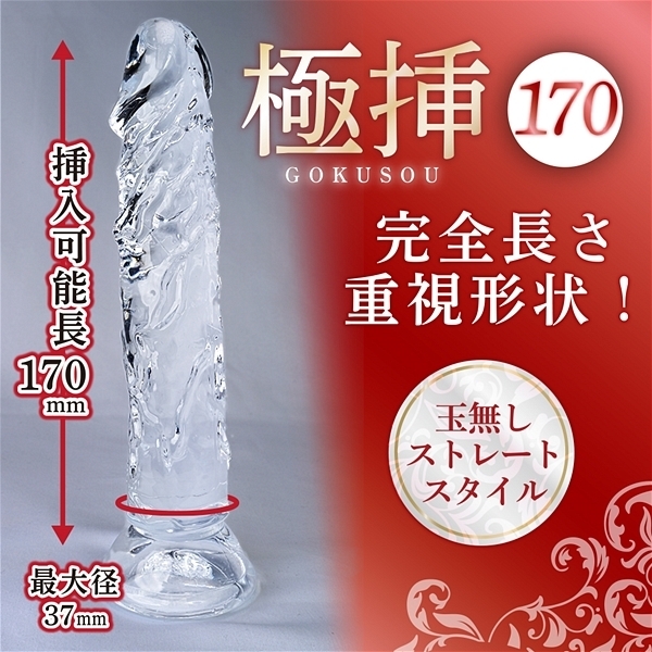 程よい質感とスタイリッシュなクリア素材、タマ無しストレート形状で絶妙の太さなのに挿入可能長170mmを実現!吸盤で床や壁に固定して、セルフでもパートナーとも楽しめる高品質ディルドです。
