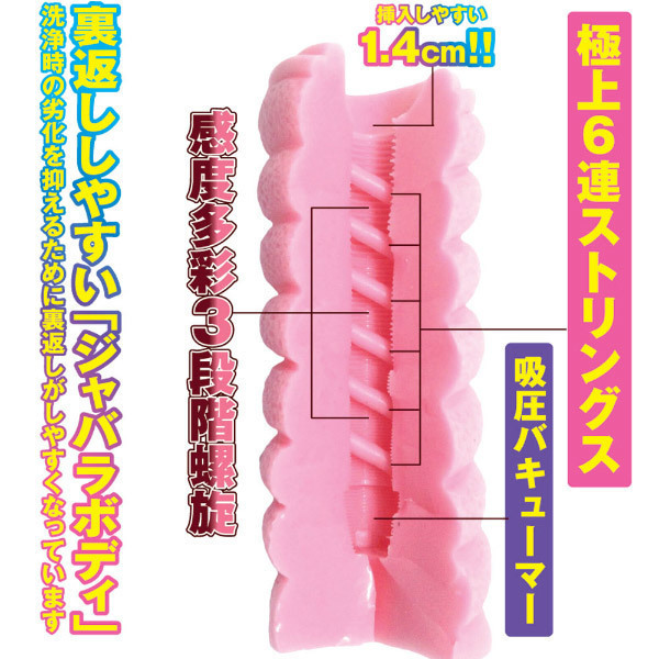オナホ界の革命児!?ムービング形状の非貫通型オナホール「バンジーシェイク」がさらに進化して登場!内部のストリングスが、前作の3本から6本になりました。 多彩な快感を生む6連ストリングスと、3段階の細かい螺旋ヒダで極上快感!内部のストリングスはカットして、自分好みにカスタマイズ可能!また、洗浄時に裏返しやすい蛇腹ボディを採用し、より扱いやすくなっています。 グレードアップした「バンジーシェイク グランツ」で、未知の快感を堪能してください。