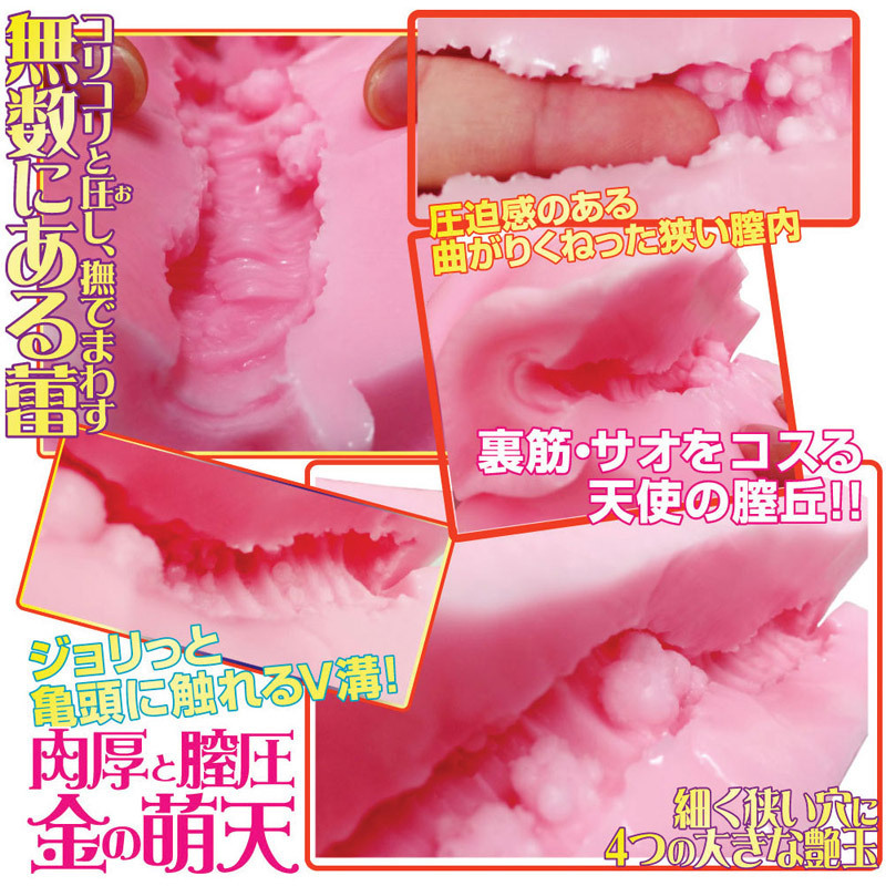 ホンモノを超える締まり具合!20代のぐちょぐちょ恥肉オナホール「金の萌天」非貫通型。 ハリのあるボリューム満点の肉厚ボディには、バンジータッチ素材を採用。 曲がりくねった膣道にヒダと無数のツブを配置!自慢の膣圧で亀頭から裏筋まで撫でまわしながら、ホンモノさながらの満足刺激をもたらします。 細部までこだわって最高の挿入感を再現したオナホールです。
