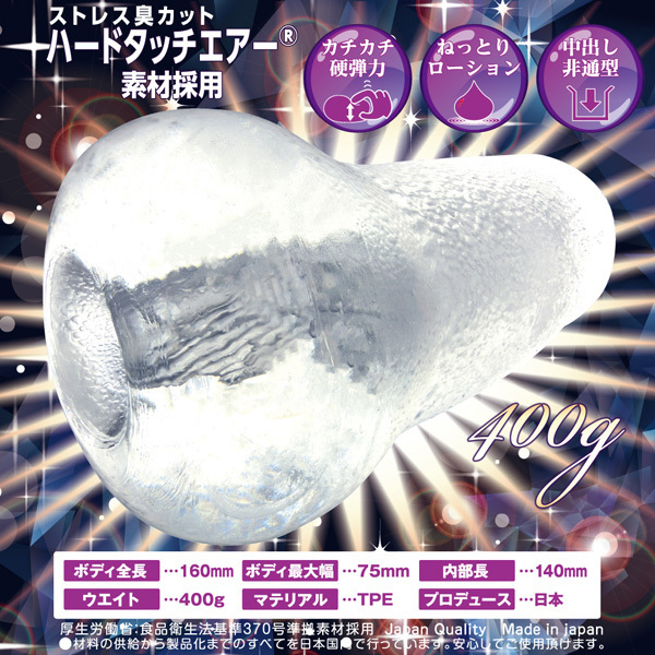 尖った刺激が一押し♪ぷりっと高弾力なハードタッチエアー素材を使用したクリアな国産製オナホール(非貫通型)。 優しげな丸い見た目とは裏腹に、三角形の挿入口やホール内部の三角形状ヒダが、エッジの効いた鋭い刺激を生み出します♪「撫でる」「かかる」「擦る」の3つのギミックで貴方をハードに昇天させる!ローション付属