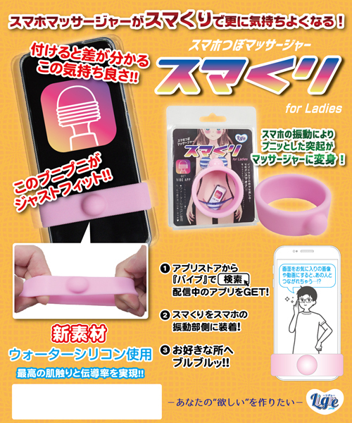 スマホに巻くだけでローターに早変わり!プニプニ柔らかくて気持ちいい突起付きのシリコンリング。 携帯端末に本品を装着し、ダウンロードしたアプリで振動させるだけ!あとは自分の敏感な部位にフィットさせれば、どこでも手軽にピンポイント刺激が味わえる♪もっちりとした質感で伝導率抜群な新素材ウォーターシリコンを使用したお手軽携帯グッズです。