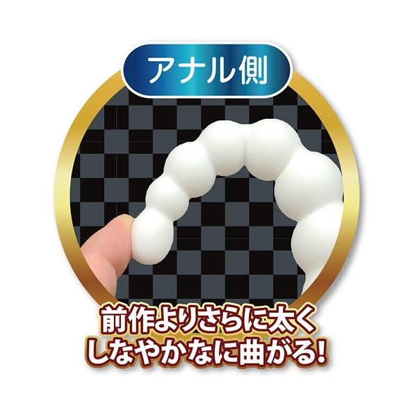 アナルビーズとアナルディルドの2つの挿入感がこれ一本で味わえる「チェックメイトDX」です♪ダブルの刺激でお得!リバーシブルタイプでシリコン素材なので挿れ心地も良好で男女問わず気持ちよくなれるディルドです♪素材は柔軟性がありしなやかに曲がるので使い勝っても抜群!ビーズ側は徐々に太くなるボールが7連続していてストローク長が11cmもあり、反対側は先端部分の膨らみが快感スポットを圧迫しやすく挿入長も12cmと挿入しやすくどちらの穴でも気持ちよくなれます♪