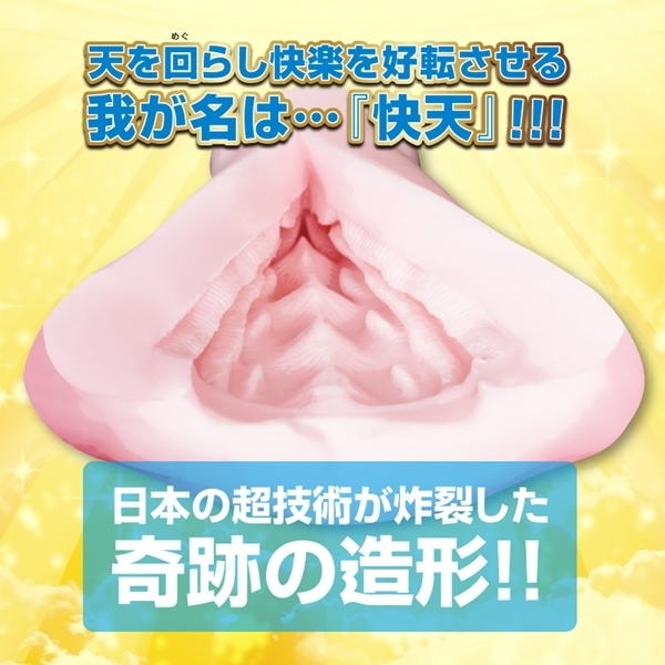 天を回(めぐ)らし、快楽を好転させる!!名は…「快天」!!ここに最高のオナホが完成!「快天」の登場です!!ウェーブした極太ヒダの連続!曲がり曲がって亀頭に吸着し離さない!入り口から何重にも連続するヒダの嵐!天井に極太段々ヒダ!左右や下には波打つ数本のヒダで亀頭をロック!中間では上下で交差するクラッシュゾーン!そして最奥では亀頭を咥え込むヒダゾリが控えている!!最初から最後までヒダに翻弄されるオナホ…まさに「快楽の天国」=快天!!内部ギリギリまで表現したヒダは、まさに芸術の域!日本の型師の超越技術が炸裂した純日本製!奇跡の造形をあなたの亀頭で感じてください。 快楽の海に溺れてしまいますよ!