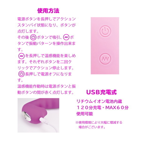 SNSで話題の<吸うやつ>吸引しながら振動を楽しめるくの字形状に温感機能搭載でリアリティUP!振動部分の形状や太さにもしっかりと拘った納得のアイテムです。