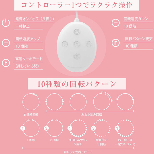 「金属ギア」搭載!静かに、ゆっくり、力強い回転が止まらない!大幅機能アップでもお値段そのまま!美しい流曲線のカップは乳房のサイズやかたちに関係なくやさしく吸着。 カップ内部には静音設計の回転機構が組み込まれており、取り替え可能なマグネット式アタッチメントを自在に回転させます。 上から服を着れば目立つこともなく屋外や公共のスペースでも楽しめる静音設計ですので、あらゆる場面でプレイが可能です。 ●10パターン回転●10段階の回転スピード