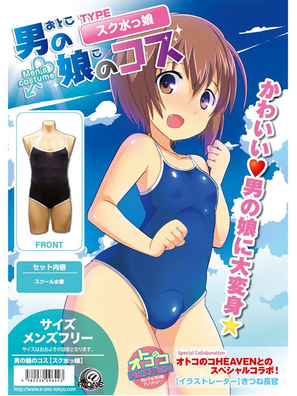 フリーサイズだから女装男子やスク水を着たい男の娘に最適!女性用と同じデザインのスク水男の娘「男の娘のコス」スク水っ娘。 紺カラーを基調とした白パイピング入りのデザインは、どこからどう見ても女性用そのもの!お肌にピタッとフィットする感じがたまらなく、女装好きの男性心をくすぐります。 コレを着ればアナタも可愛い男の娘になれる!?フリーサイズなので、多くの方に楽しんで頂けるコスチュームです。