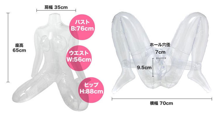 手足が付いてコスプレさせる楽しさがUPしたエア・ダッチワイフの「LOVE BODY aki(ラブボディアキ)」です。 こだわりぬいたM字開脚と、美しい曲線を描いた細身のアニメ系ボディはまさに究極!前作とは違いよりリアリティを追求した、Akiならではの小振りなバストとプリティボディは、世の男性を虜にする事間違いナシ!オナホールを装着する穴は1箇所となり、正常位・バック・騎乗位などオールマイティーなプレイが楽しめる計算された形状です。
