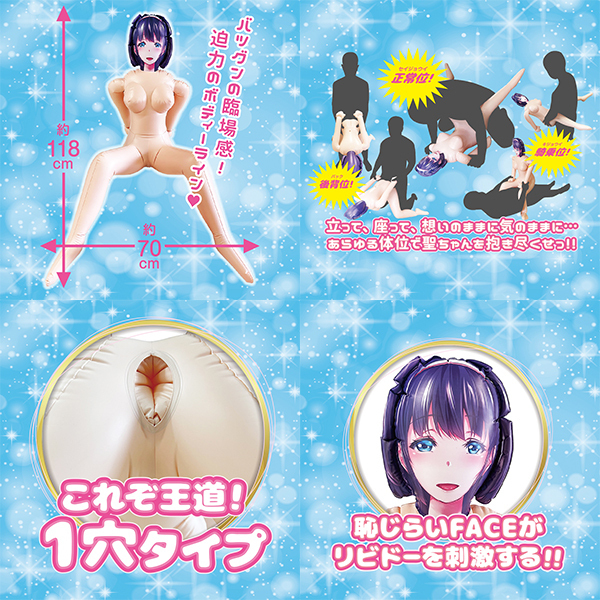 超リアルエアドール「むち萌え!聖ちゃん」の登場です!匂い系グッズで人気の、聖(ひじり)ちゃんがエアドールになりました♪むちむちのボディで恥ずかしそうな聖ちゃんの笑顔がたまらない!顔全体がしっかりと違和感なく収まっていて凛々しいエアードールへと仕上がっています♪空気を注入すると後ろ手にM字開脚したポーズになり、王道の1穴タイプでお好きなオナホを装填したら、いざ聖ちゃんと合体へ!体位は正常位からバック、さらには斜めに交わる事も可能でホールは小型から中型ぐらいまでなら装着可能♪肌はビニールっぽくない触り心地で少しマットな感じもグッド!蕩けそうな恥じらいフェイの可愛い聖ちゃんをたっぷりと体感してください♪浮き輪を作っている工場制作なので、頑丈で安心ですよ!