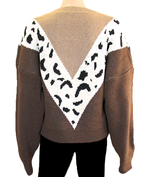 HOME > お買い得 > お買い得商品 > 【1180円★数量限定】V字ラインのヒョウ柄ニットセーター Mサイズ ブラウン<お一人様1点限り>