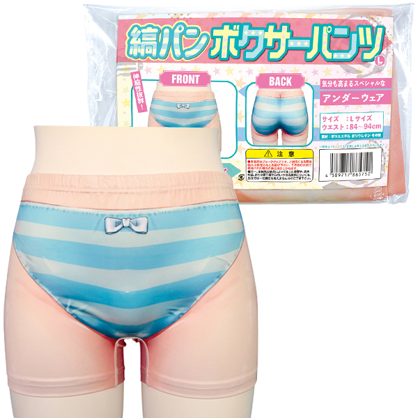 一見フルバック風に見える可愛い縞パンデザインのメンズ用ボクサーパンツLサイズ。