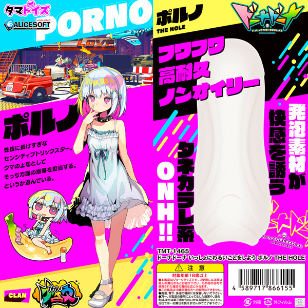 アダルトゲームメーカーのアリスソフトとタマトイズとのコラボ商品!「ドーナドーナ いっしょにわるいことをしよう ポルノ THE HOLE」。