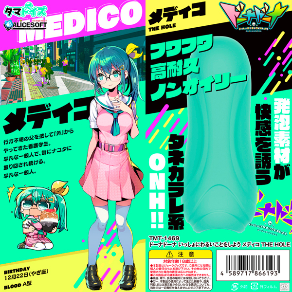 <ALICE SOFT(アリスソフト)とタマトイズのコラボ商品>アリスソフト最新作「ドーナドーナ いっしょにわるいことをしよう」がオナホになった!一般看護学生メディコは、締め付けながらザリザリと擦れるように刺激する構造♪新開発の発砲シリコン素材と合わさり、搾り取るような快感を味わえます。