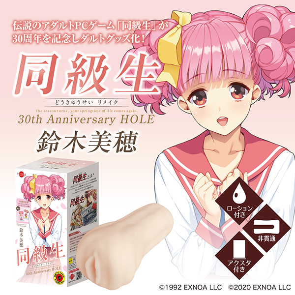美少女ゲーム界に革命を巻き起こした伝説的作品「同級生」。 そんな名作の生誕30周年を記念して作品キャラクターをイメージしたオナホールが登場!「同級生30th Anniversary HOLE」はここがオススメ。 各キャラクターの内部をイメージ、再現したオナホール、本商品付属でしか手に入らない特製アクリルスタンドを同封。 新旧イラスト両面印刷の30周年ならではのアイテムです!スティックローション付属ですぐ使えます。 鈴木美穂
