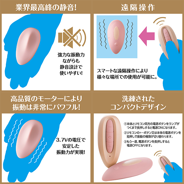 YUIRA人気ブランド極天シリーズからワイヤレスローター登場。 〜シックで清潔感のある美カーブボディ〜美しいカーブでデリケートゾーンを包み込む。 リモコンコントロールで、一人でもゆっくり、敏感なポイントにアプローチ出来ます。 ラグジュアリーな見た目で、初めての方にもでも受け入れやすいアイテムになっています。 ◎遠隔操作→スマートな遠隔操作により様々な場所での仕様が可能に。 ◎業界最高峰の静音→強力な振動ながらも静音設計で使いやすい。 ◎高品質のモータにより振動は非常にパワフル!→3.7Vの電圧で安定した振動力が実現◎10種の振動パターン→ボタン式でスムーズに調整可能です!◎シリコン素材→可動部シリコン素材採用でデリケートゾーンへの使用も安心。