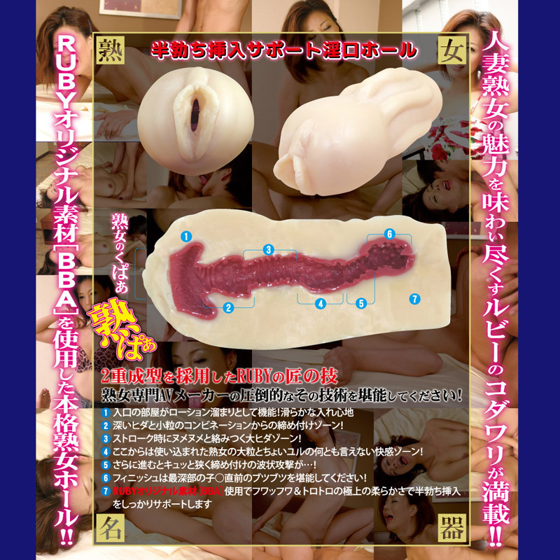 お得なDVD同梱バージョン!これ以上の快感はない!?熟女の魅力を知り尽くしたルビーのこだわりがたっぷり詰まった至高ホール(日本製)。 ●純淫「藤木未央」のアソコを完全再現●RUBYオリジナル素材【BBA】を使用●「熟ぱぁ」な挿入口は半勃でも挿入可能●挿入口すぐにローションポケット●スムーズな挿入をサポート●ヒダと大小様々なツブが繰り返し刺激●熟女とは思えない締め付けがフィニッシュへと促します。 2重成型を採用した匠の技に、誰もが虜になる極上オナホールです。