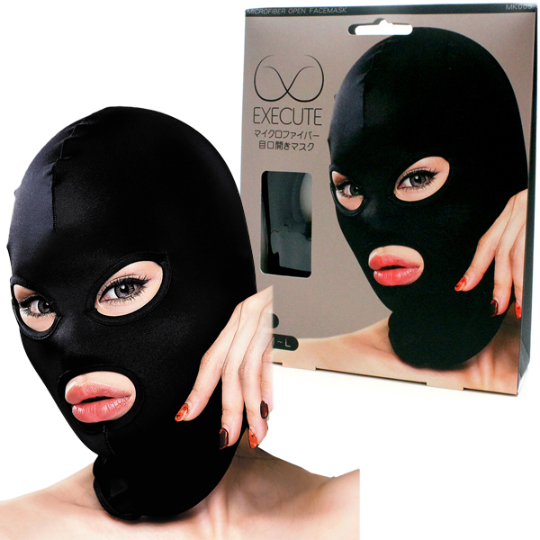 日本国内の工場で縫製され、国産のマイクロファイバー生地を使用したストレッチ素材の目と口開きタイプのフェイスマスク。