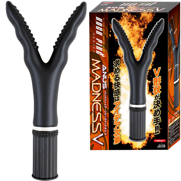 <T-BEST×LOVE FACTOR>「ア〇ルに挑戦してみたいけどちょっと怖い〜」「彼女に試してみたいけど、拒否られそう…」大丈夫です。 バックファイアーシリーズ、エ〇ナスMADNESS Vにお任せください!!MADNESS Vの名前の通り未知の体験をお手伝いします。 マッドネスVは先端が大きく開いたV字型の形状です。 別れた先端を一つにして挿入すると中でV字に開きます。 内部を擦り上げるように刺激します。 ローションをたっぷり塗って、ゆっくりやればそこはもう拡張と振動の合わせ技でいわゆる未知との遭遇の世界です。 ゆっくりあせらず開発していきましょう!冒険の先には、未知の快感とアブノーマルな世界があなたをお待ちしています!!ファンクションは、7ファンクションを搭載!!弱⇒中⇒強とバイブレーションが進み、その後は7種類の多彩な振動になっています。 強力モーター内蔵で先端まで強力に振動します。