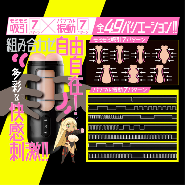 ぷにあな電動オナホの第2弾は、揉まれる吸引刺激7種類×ハイパワー振動7種類の合計49アクションを楽しめる♪内部素材には、柔らかく安全性と耐久性に優れたエラストマーを使用。 固定用吸盤で壁や机など好きな場所に設置できるほか、145度まで好きな角度に調整可能!興奮度高まるぷにあなちゃん(CVそよかぜみらい)の喘ぎボイス10分収録。 イラストは「maruku」氏