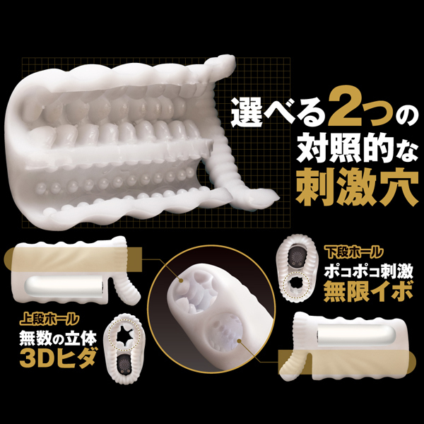 男のアソコを気持ちよく鍛える電動オナホ「メンズジム」。 伸縮性抜群のもっちりふわとろな高品質シリコン素材を使用した、立体的な3Dヒダと無限イボの異なる刺激が選べる2穴仕様のオナホと、ハイパワーローターのセット!振動は全10種類を搭載、IPX7の完全防水仕様でお手入れ簡単。 激振動を感じながら気持ちよくトレーニングを楽しもう!100分間充電で最大1時間稼働