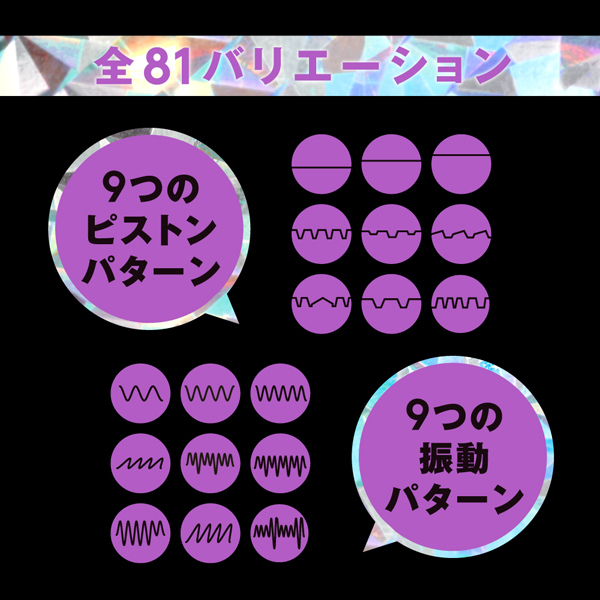 9種類ピストン×9種類振動の合計81パターンアクションと、外側にはパワフルローターを内蔵した子機を搭載◎ネックをくの字に曲げて使えば、360度回転しながら豪快にスイングさせることも◎素材には高品質なソフトシリコンを採用。