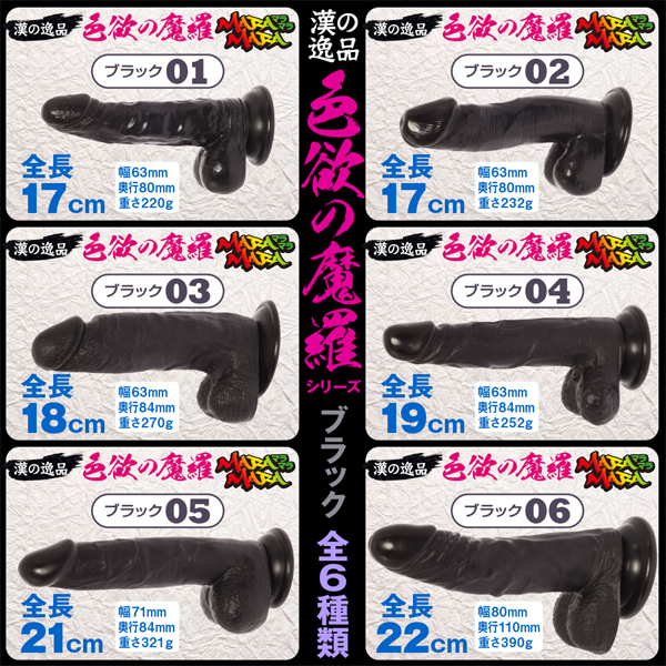 maccos japanのディルドブランドMARAMARAから【色欲の魔羅シリーズ】の登場です。 こちらもストレートなフォルムでピストンしやすく、凸凹感が少ないので、奥まで突けるタイプ。 全長21cm、最大径3.5cm、挿入長13.5cm。 ブラックカラーの色欲に溺れるリアルな外観と感触がたまらない!本物志向のスタンダードなディルドです。 05はポルチオ責めに最適なロングタイプ。 ストレートの下責め用に最適。 適度な弾力と硬さを兼ね備え、本物以上の質感は貴女を虜にすることでしょう。 床、壁、浴槽とどこにでも張り付く強力吸盤付きで楽しむ場所を選びません。 初心者から上級者までしっかりと楽しむ事が出来ます。