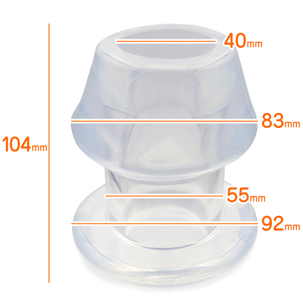ビックサイズのアナタにピッタリ装着出来る!男女兼用拡張トンネルプラグ!内部穴360度見渡せる極上の光景幅広いプレーが可能な多用途プラグ柔軟性と形状保持力を備えた透明色の拡張アイテムです。 拡張プレイだけでなく観賞や洗浄、ローション注入等、幅広く活用できます。 5サイズ展開はレディース、メンズ、初心者、上級者と使い分けが可能。 ご自分の判断でご利用ください。 素材:TPRサイズ:XLサイズ全長:104mm最大幅:83mm(底部を除く)