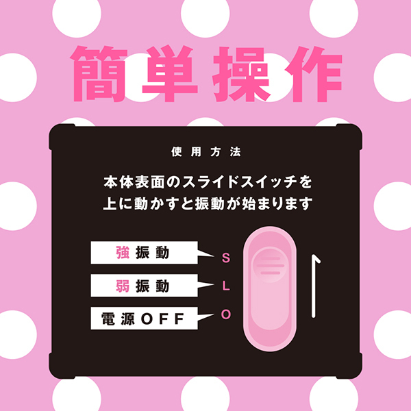 軽量でコンパクトで扱いやすい!まるでスティックローターのように使えるコンパクトな電マです。 初心者の人に使って欲しいタイプでお求めやすい価格にこっそり遊べる静かな可動音♪電池を入れた状態でも90gの軽量設計ですので本当に使いやすいです。 ヘッドの素材はプラ系でネックの動きは軽快!ワンボタンでオンオフと振動の強弱を簡単に操作でき、使いたい時にすぐ使えるよう、便利な電池交換式となっています♪電源は単4電池2本(付属)。 こちらはピンクカラーです♪