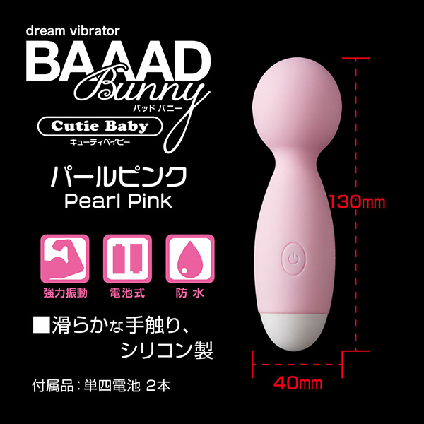 女性の気持ちいいポイントを追求して誕生したバッドバニー・シリーズ。 可愛くてキュートなデザインに優しい肌触り!ソフトな使い心地を実現し、女性の「欲しい」を形にしたシリーズの登場です♪こちらのキューティベイビーは可愛らしいデザインのデンマ。 3段階の強弱と7パターンの振動による計10種類の刺激で女性を虜にしてくれます♪ご使用後は丸洗い可能な生活防水仕様で清潔さを保ち続けます。 初めてのデンマを使用する方にも最適な一本です♪