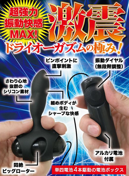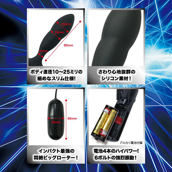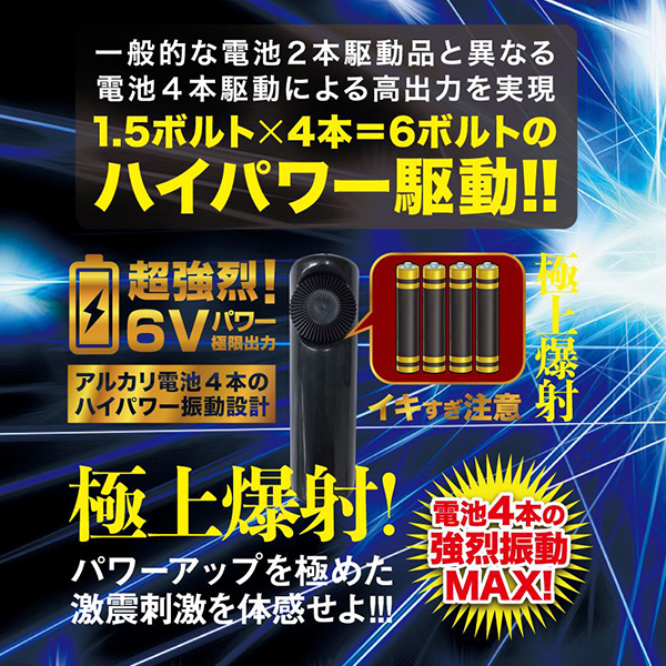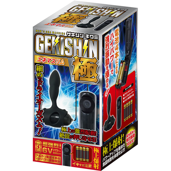 激震が走る快感!振動を極めた絶頂メンズローター!一般的なローターと異なる、電池四本駆動による6Vパワーの超強烈振動を実現させた「GEKISHIN 極」シリーズより、エネマボディを搭載したメンズローターが新登場!エネマボディは、さわり心地抜群のシリコン素材。 ボディのラインは二箇所のくびれがアクセントを生みますカーブデザイン。 超強烈振動がボディてっぺんまでビリビリ震える悶絶特殊構造です!「エネマスリム」はボディ直径10ミリ〜25ミリの細めなスリム仕様。 この細さがアナタを虜にさせるはず!さらに、ハイパワーを加速させるアルカリ電池付き!パワーアップを極めた激震刺激を体感せよ!