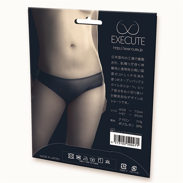 日本国内の工場で縫製され、国内縫製によるしっかりとした造りと伸縮性と透明性の高い国産ストレッチ素材を使った肌触りの良いオープンバックスタイルのショーツとなっています。 クロッチは縫い目のないハギ無しとなっていて、プレイ用のショーツとしてもいい感じ♪ハーフバックなシルエットは見せすぎない感じが好評で、透け感と程よいニュアンスをしっかりと感じさせてくれます!カラバリはブラックとホワイトの2色展開でこちらはブラックとなっています♪