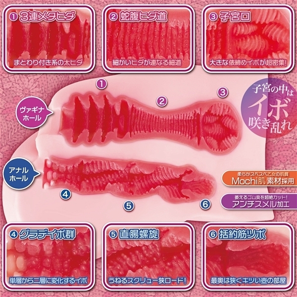 「子宮の中がすごいオナホ」というコンセプトの下、ヴァギナホールには「子宮での快感開花フィニッシュ」に向けて倍プッシュできる増幅ヒダ系を採用した非貫通オナホです。 アナルホールは螺旋ベースで構築し、それぞれ異なる個性を持った「疑似粘膜二層構造の2穴」をお楽しみいただけます♪ボディはNOTOWA初の大型タイプで、素材には乙女の太もも感触をイメージした「Mochi肌素材」を使用し!柔らかく滑らかな肌触りにゴム臭も極限までカットしているため、没入プレイを妨げることはありません。 快感開花!子宮まん開!「ユーテロ淫ブルーム」で存分にエロスの世界を楽しんでください。 柔らかく滑らかな肌触りに加え、ゴム臭も極限カットしていますので、没入プレイの邪魔をすることはありません。