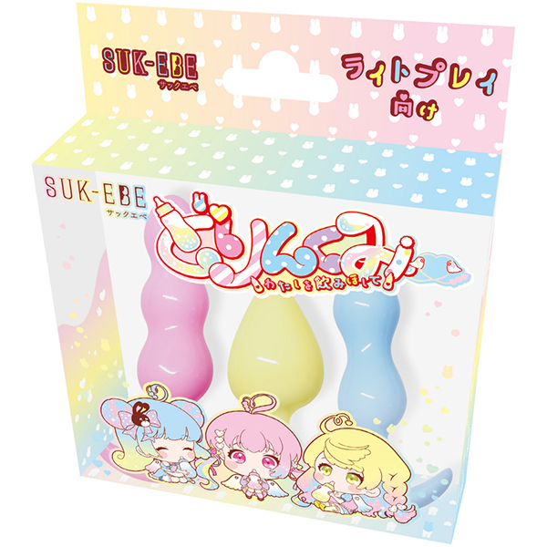 夢見る気持ちを忘れない人のための幻想的なアイテム。 「どりんくみー」が登場しました。 内容物はプラグ3個セットとなっており、初心者でも罪悪感なく楽しめるサイズ感です。 「どりんくみー」は名前の通り、その可愛らしい見た目をゴクゴクと飲み干すように使います。 色とりどりのキュートなデザインは、まるで夢の世界から抜け出したような幻想的な魅力を放ちます。 一瞬であなたを童話の世界へと連れていくことでしょう。 また、使いやすいサイズと滑らかな素材で作られており、快適で安心感のあるプレイが可能です。 初心者の方でも自信を持って楽しむことができ、心地よい刺激に包まれることでしょう。 ローションのような滑らかな液体を使用する事で、夢体験がより深まるのでオススメです。 「どりんくみー」は、あなたの日常を彩り可愛らしい幻想の世界を叶えるパートナーです。 さぁ一緒に冒険を始めましょう。 【サイズ】ブルー:高さ90mm最大径25mm、イエロー:高さ70mm最大径35mm、ピンク:高さ110mm最大径30mm