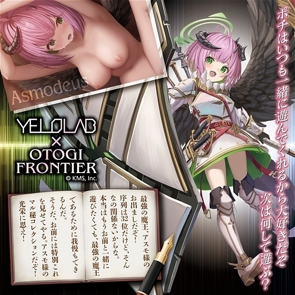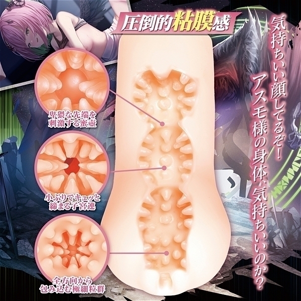 「YELOLAB×オトギフロンティアR」コラボ作品。 超絶美麗パッケージ「オトギフロンティアTHEHOLEアスモデウス」の登場です。 「YELOLAB」が魔王アスモデウスの為に作ったこだわりのオナホールは重量300グラム、全長155ミリと使いやすいサイズのハンドホールです。 魔王アスモデウスの秘部は「圧倒的粘膜感」の絡みつく粘膜イボ群子●壺構造。 3つに連なるイボの子●壺を配置した構造は全方向から絡みつき纏わりつく粘膜イボ群のち●壁感触を最大限に楽しめます。 奥に進むにつれキュッとしまった子●壺の締め付ける感触が射●感を一層高めます。 一連の流れで全方向粘膜イボのち●壁をしっかり感じ取れる「粘膜内部構造」をお楽しみください。 素材は柔らかく粘膜感を演出する極上な「高品質ソフト素材」を採用し、魔王アスモデウスのやわらかい秘部を余すことなくご堪能いただけます。 「最強の魔王、アスモ様のお出ましだぞ!序列は32位だけど、そんなの関係ないからな。 本当はもうお前と一緒に遊びたくても、最強の魔王であるために我慢もできるんだ。 そうだ、お前には特別これを見せてやる。 アスモ様のマル秘コレクションだぞ!光栄に思え!」 ※保管に便利なブリスターケース、YELOLABオリジナルローション付属。