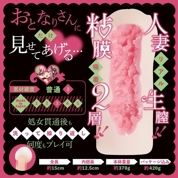 人気急上昇中の人妻Vtuber「夏芽みのり」が監修した、初の非貫通オナホ商品です。 人妻でありながら処女という背徳感あふれる設定を忠実に再現し、驚きの処女膜ギミックを搭載!使用前には、優しく処女膜をいじり、膜が破ける瞬間をお楽しみください♪内部構造はリアルと妄想の絶妙なバランスで設計された2.5次元構造で、二層の粘膜感が驚くほどの生々しさを再現!非貫通タイプで、甘く優しいえっちタイムを存分にご堪能いただけます。