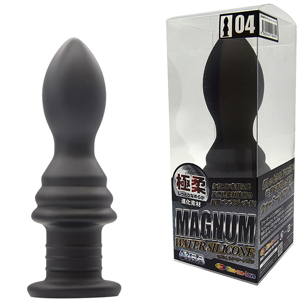 ブラックが冴えわたる本格派ディルドが最新素材になって新登場!極上素材を採用した「マグナム ウォーターシリコン」!黒い欲望を満足させるエキスパートなボディライン。 その魅力をそのままに素材をグレードアップしました。 シリコンを超える進化素材。 超しっとり凄なめらか快感度を追求した進化素材、それがこのウォーターシリコン素材なのです。 しっとりきめ細やかな質感に生々しい生体的な肉感弾力、人体や環境にも優しい安心材料。 アダルトグッズのステージを高めべく進化したマテリアルです。 熟練者向けのマニアな形状に極上の肉々しさをプラスしたゴージャスなディルドです。 調教や拡張などのハードコアでエクストリームなプレイにぴったりなシリーズとなりました。 「MAGNUM」の名の通りパワーあふれる快感をご体験ください。 「04」は、太さ4〜6センチのプラグ型フォルム。 二段階の搾りスポットをもつ斬新な挿入感!