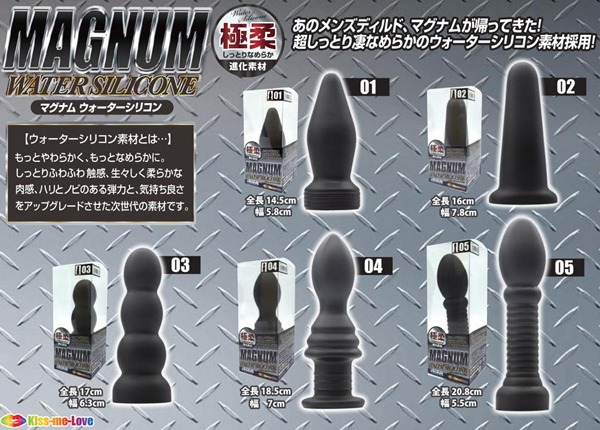 ブラックが冴えわたる本格派ディルドが最新素材になって新登場!極上素材を採用した「マグナム ウォーターシリコン」!黒い欲望を満足させるエキスパートなボディライン。 その魅力をそのままに素材をグレードアップしました。 シリコンを超える進化素材。 超しっとり凄なめらか快感度を追求した進化素材、それがこのウォーターシリコン素材なのです。 しっとりきめ細やかな質感に生々しい生体的な肉感弾力、人体や環境にも優しい安心材料。 アダルトグッズのステージを高めべく進化したマテリアルです。 熟練者向けのマニアな形状に極上の肉々しさをプラスしたゴージャスなディルドです。 調教や拡張などのハードコアでエクストリームなプレイにぴったりなシリーズとなりました。 「MAGNUM」の名の通りパワーあふれる快感をご体験ください。 「05」は、太さ3〜5センチのドング型フォルム。 強い刺激の灯篭フォルムが新しい快感を引き出す!