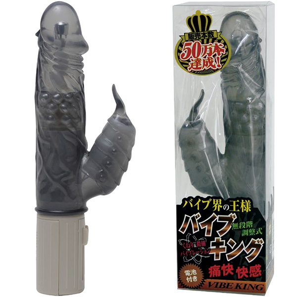 販売本数50万本達成!その人気はまさにバイブ界の王様!バイブ選びに迷ったら、まずはこれ!性能・機能・大きさ・ボディデザイン・お値段の全てが満足できるハイクオリティのバイブレーター「バイブキング」!多くのリピーターに愛されて50万本の称号は伊達じゃありません!しっかりと力強いくねりスイングに強烈なバイブレーション。 二枚舌でテンポよく刺激するフラッパー(子機)と、回転と振動が別々で操作できるスライドコントローラー。 挿入可能長さ10cmに太さ3.5cmとなる小ぶりでスリムなジャパニーズサイズ。 女性に受ける清潔感のあるクリアカラーにゴテゴテしないスッキリとしたボディデザイン。 安心の純日本製。 シンプルで使いやすく初めての人でもストレスなくお使いいただけるバイブレーターです。 こちらは凹凸の刺激が気持ち良い高刺激なパール入り仕様となっております。 カラー:スモーク
