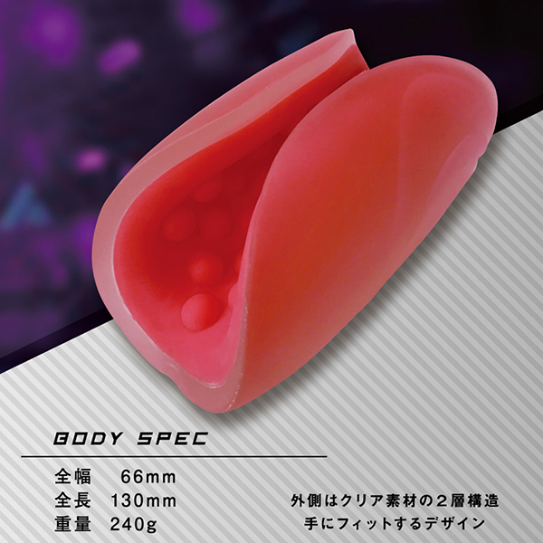 時間を掛けて限界を超える。 スローオナニー専用オナホール「ズリセン」!あなたは、「スローオナニー」という言葉を知っていますか?贅沢にたっぷり長い時間をかけて、ゆっくりじっくり丁寧にプレイを楽しむ、それがスローオナニー。 「ズリセン」は、そんな新しいプレイスタイルのために生まれたオナホールです。 挟み込むホットドッグ形状と、まったり刺激とで、スローオナニーをサポートします。 貴男をパックリと挟んで包むホットドッグのパンズような形状が特徴的です。 通常のオナホールにある挿入行為が不要で挟むんでコスるだけで楽しめるのでビンビン状態でなくても使用可能。 半ビン状態から優しいアプローチで、ゆっくりと気分を高めることが出来るのです。 長い時間を楽しめるよう、まったりとした刺激も特徴的。 最初は優しくスリスリ、盛り上がってきたら裏をズルズル、さらに高まってきたら頭をグリグリとまるで磨き上げるようにじっくり楽しめます。 焦らすようにジワジワと快感を貯め込むことでフィニッシュ快感は遥かな高みに到達するはず。 すぐにフィニッシュを求めず、そこに至るまでの刺激を楽しみ続け、より深い快感を目指す贅沢な流儀。 それが新しいスタイル、スローオナニーなのです。 強い刺激やビンビン持続も必要ないので、「早さ」や「タフさ」のトレーニングにも!?「イボ」は、大きなイボイボ突起がびっしり配置されたデコボコ快感。 弾力たっぷりな肉感素材。 クリアカラーに包まれたビビッドなレッドカラーが絶妙な高級感を演出。 手コキと相性ぴったりなツブツブのまったり刺激をお楽しみください。